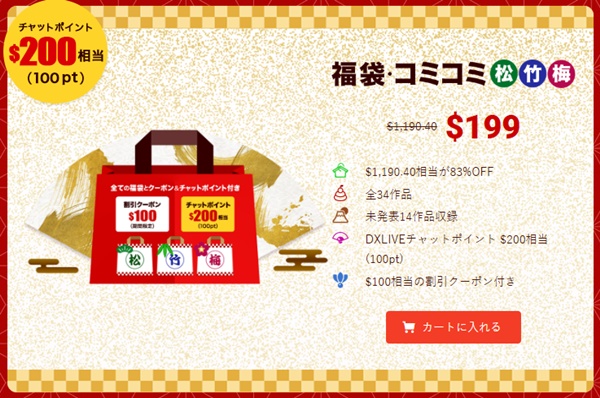 DXLIVEのポイント自体が安く購入できるというわけではありませんし、むしろ割引クーポンとかを使って普通に購入した方が安いまでありますので、アダルト動画に興味がないかたは今回の福袋はスルーして貰ってOKだと思います。