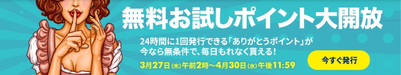 本キャンペーンはエントリーも不要で全ての人に自動的に適用されていますので、あとはありがとうポイントの取得ボタンを押すだけで簡単に無料ポイントを貰う事が出来ます。