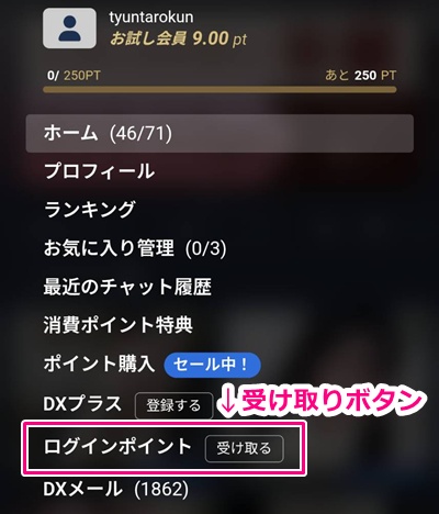 DXLIVEへ無料登録するだけ(お試し会員)でもログインポイントが貰えます!