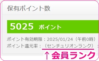 購入額が15000ドルを超えるとD2PASSでいうところのセンチュリオン会員というものになっているはずですので、会員ランクを確認してみましょう。ポイント還元率と書かれた横に表示されています。