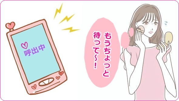 コールチャットは女の子を呼び出すことが出来る便利な機能ですが、コール待ちの状態だとしても必ずしもすぐに対応してもらえるとは限りません。お化粧中だったりタイミング悪くおトイレに行ってしまっていたりする事もあるかと思います。