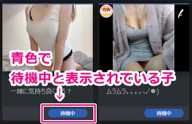 まず、覚えておいていただきたいのは、コール待ち(コールチャット対応)の女の子は待機中の一覧には表示されないという点です。