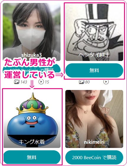 月の購読料金は高くても5000BEECOIN程度で中には無料の子もいますが、とりあえず気になる女の子がいたらフォローをしておくと、fanblebeeの上部タブからいつでも呼び出す事が出来るので、再度探し回ったりする手間が省けます。